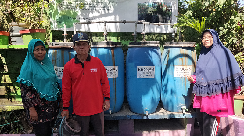 Pengolahan sampah organik ini menghasilkan pupuk cair, kompos dan biogas