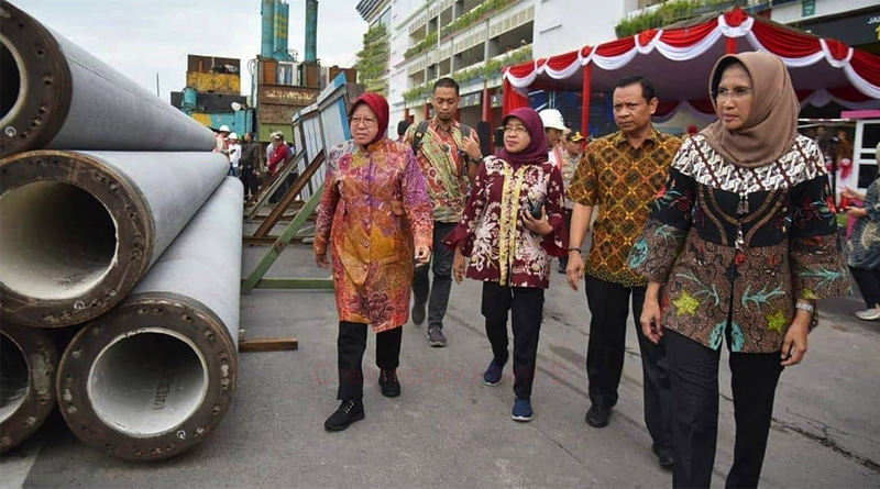 Walikota Surabaya Tri Rismaharini meresmikan dimulainya proyek pengerjaan Jembatan Joyoboyo, Kamis (5/3/2020). Jembatan Joyoboyo ini terletak di wilayah Kecamatan Wonokromo.