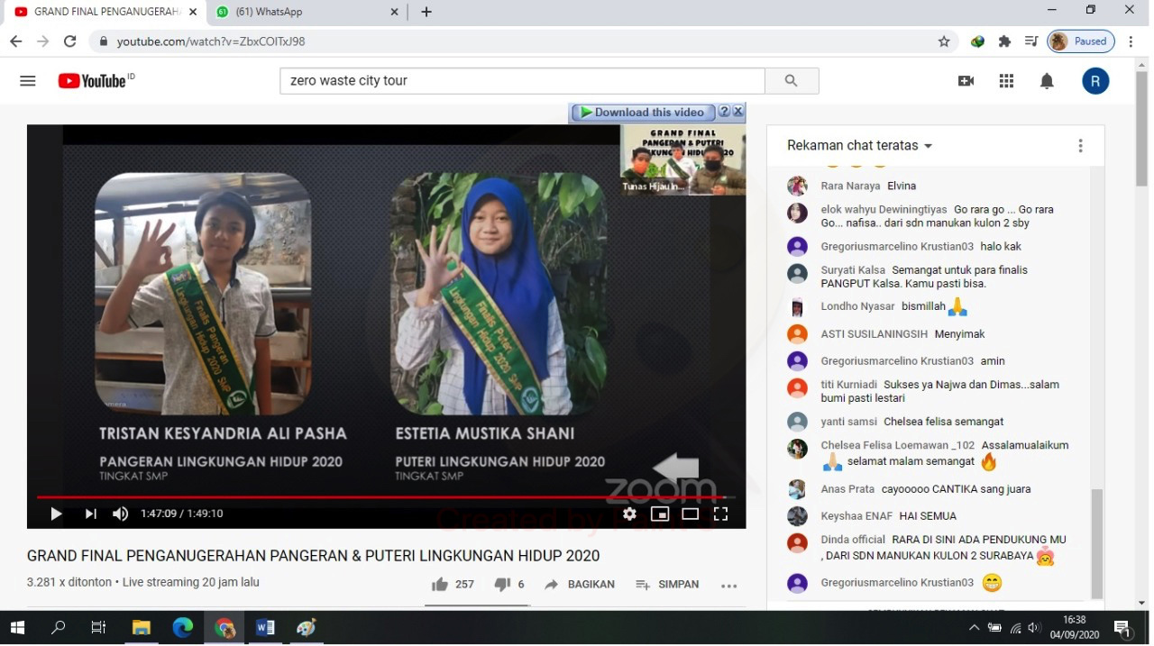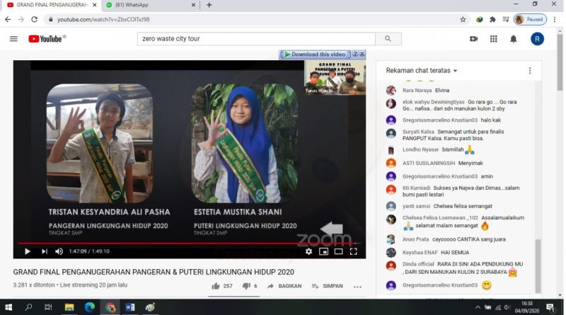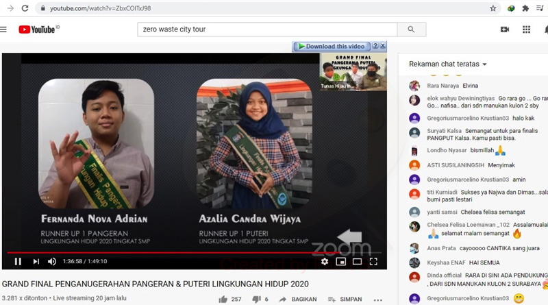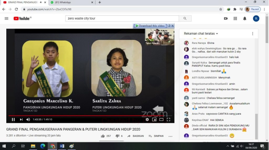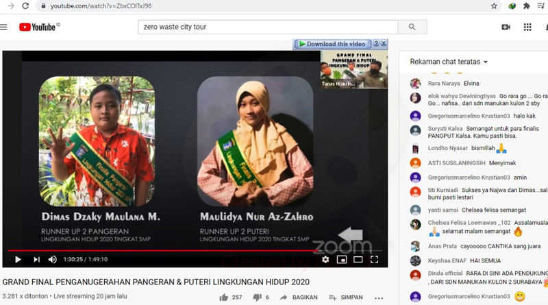 Para pemenang Penganugerahan Pangeran dan Puteri Lingkungan Hidup 2020 diumumkan secara LIVEmelalui Youtube “Tunas Hijau ID” pada Kamis (3/9/2020). Tidak hanya untuk siswa yang menjadi peserta kegiatan ini, juga ada penghargaan untuk guru terbaik dan kepala sekolah terbaik.