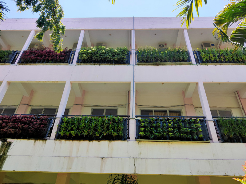 Di sekolah yang berlokasi di Jalan Ngagel Kebonsari 1 ini, taman pagar atau wall garden menjadi asri dan keren. Taman pagar ini menghiasi lantai 2 dan 3 gedung depan sekolah sebelah utara.