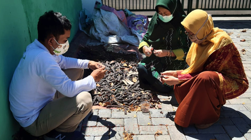 Tunas Hijau ID pun lantas mengajak mereka mengefektifkan proses pembusukan pengolahan sampah organik di rumah kompos itu. Caranya, dengan memadatkan tumpukan sampah organik di kedua bak itu. Selanjutnya, pelembaban dilakukan dengan penyiraman.
