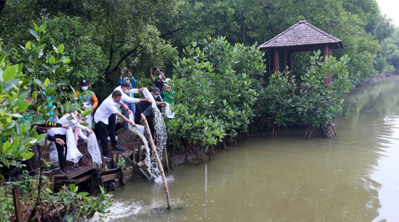 Pemerintah Kota (Pemkot) Surabaya melalui Dinas Sumber Daya Air dan Bina Marga (DSDABM) Surabaya terus berupaya menjaga kelestarian air. Oleh karena itu, masih dalam suasana Peringatan Hari Air Dunia 2022, pihaknya menggelar penanaman pohon dan pelepasan benih ikan bandeng, di Kebun Raya Mangrove Medokan Ayu, Kecamatan Rungkut, Kota Surabaya, Rabu (30/3/2022).