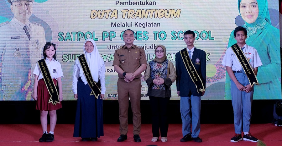 Pemerintah Kota (Pemkot) Surabaya meresmikan pembentukan Duta Ketentraman dan Ketertiban Umum (Trantibum), Senin (31/2/2023). Pembentukan Duta Trantibum yang berasal dari pelajar Kota Surabaya tersebut, sebagai bagian dari upaya deteksi dini dan mencegah kenakalan remaja.