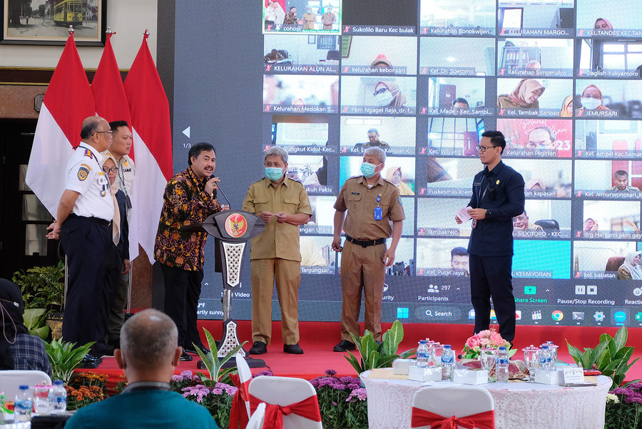 Dalam kegiatan tersebut, Wali Kota Surabaya Eri Cahyadi yang diwakilkan oleh Sekretaris Daerah (Sekda) Kota Surabaya Ikhsan menyampaikan sejumlah pemaparan strategi Pemkot Surabaya dalam penuntasan ODF atau Stop Buang Air Besar Sembarangan (BABS) di Kota Pahlawan.
